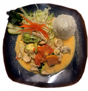 31. Cari Do rote Kokos-Curry-Soße mit frischen Gemüse und Basilikum, wahlweise mit+++ABDF